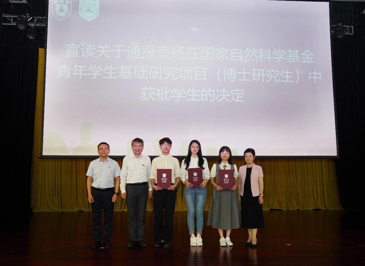 随后,与会领导和嘉宾为新生代表佩戴日本无码av 校徽。王宏伟宣读了《关于通报表扬在国家自然科学基金青年学生基础研究项目(博士研究生)中获批学生的决定》。全体同学以热烈掌声向背后默默付出的全体教师致以教师节问候。2025级硕士研究生陈一丹带领全体新生庄严宣誓。誓言铿锵有力,展现了医学生的坚定信念和决心。