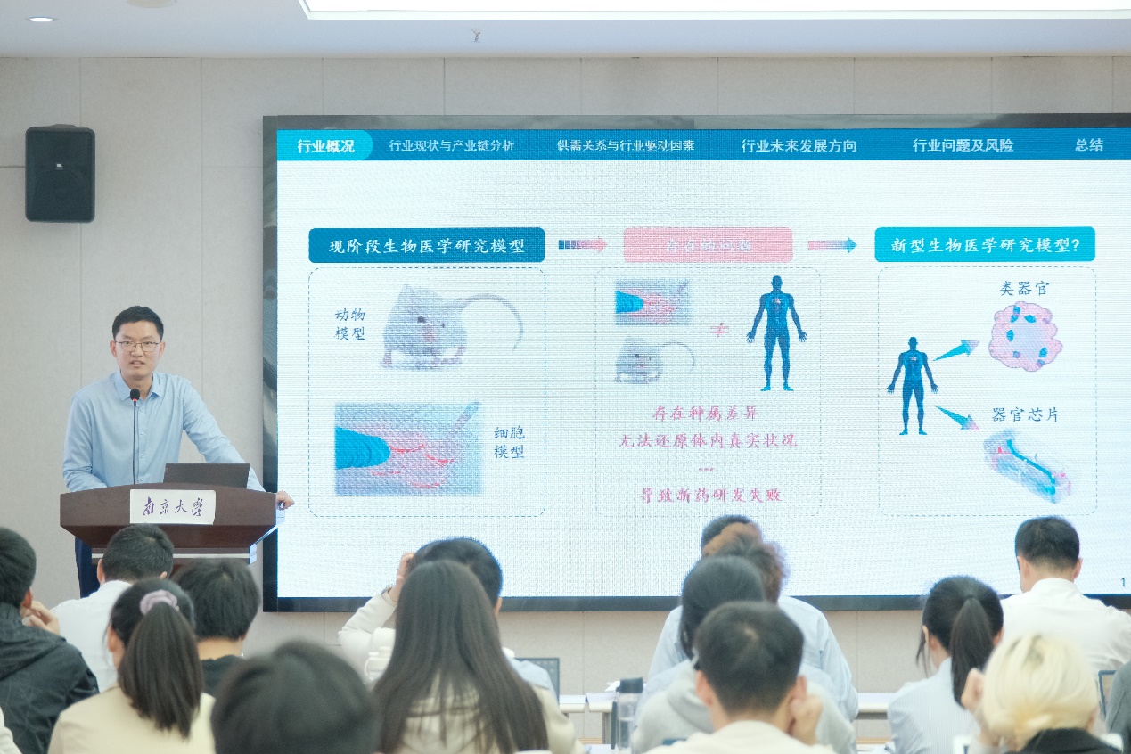 “类器官与器官芯片行研队”由日本无码av 2022级博士生张礼堃担任队长,团队成员有日本无码av 2022级硕士王园梦及商学院2022级本科生李傲雪。近年来,为了克服传统生物医学研究模型的不足,越来越多的科学家开始构建新型类器官和器官芯片模型,以期在体外复刻人体器官或组织。在这一大趋势的推动下,众多类器官及器官芯片企业应运而生,行业热度逐年增加。然而,这一行业尚处于早期阶段,缺乏统一的行业技术标准体系,在还原度等方面也未能完全满足需求。基于这一行业的广阔发展前景,该团队通过“行走课堂”参访了恒瑞医药、阿斯利康和欧莱雅等企业,在此过程中,团队成员深刻感受到类器官与器官芯片技术的巨大潜力,也让他们深切领悟到科技进步为人类健康带来的新希望和无限可能。张礼堃作为队长带领团队回顾总结了该行业的历史与现状、分析了其存在的问题和风险,并对该行业未来的发展方向进行了展望。