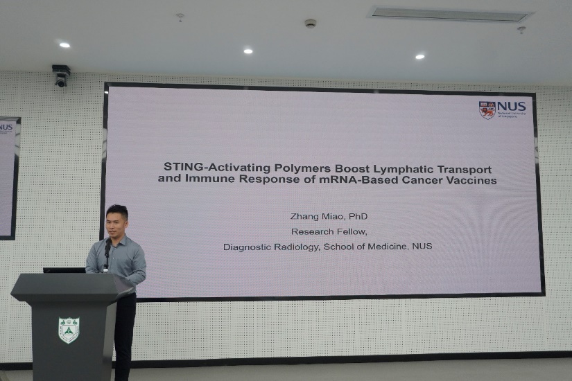 新加坡国立大学的张淼博士展示了“STING-Activating Polymers Boost Lymphatic Transport and Immune Response of mRNA-Based Cancer Vaccines”的研究成果。他介绍了一种命名为PD的干扰素基因(STING)激活聚合物刺激剂,旨在增强mRNA癌症疫苗的免疫原性,并证明了STING激活聚合物作为提高mRNA疫苗在癌症免疫治疗中有效性的有效策略,这一发现有望为未来的疫苗设计提供新的思路。