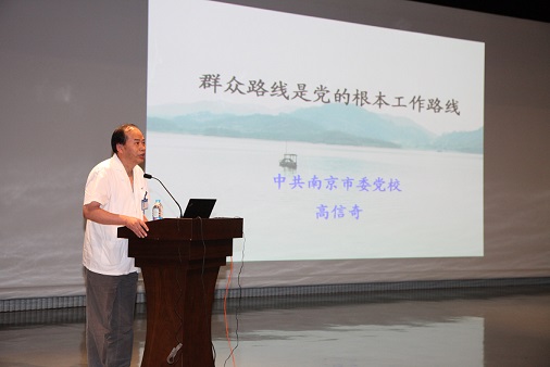 高信奇副教授主要从党的群众路线教育实践活动的性质和背景、党的群众路线的基本内涵与时代要求、新形势下群众路线面临的复杂局面与挑战以及坚持和践行群众路线的基本途径四个方面为广大党员干部带来了一堂别开生面的党课。课上,高信奇主任旁征博引,通过大量的文献和生动的事例深入浅出地阐述了群众路线的基本内容和要求,加深了党员同志对于群众路线教育实践活动的认识,取得了良好的效果,党员代表们纷纷表示讲座十分精彩,丰富的内容和生动的讲解让大家受益匪浅。