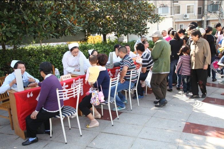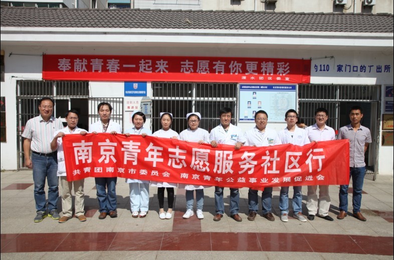 2013年10月13日上午, 由鼓楼医院、儿童医院青年志愿者服务队组成的“南京鼓楼医院集团青年志愿者联盟”结合各自医院的优势特点,精心组织了青年医护志愿者到溧水区安居苑小区广场进行义诊服务。
