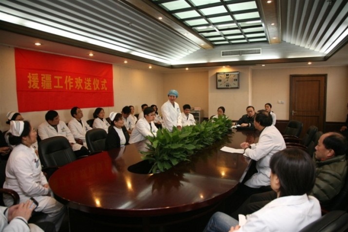 举行了简短而隆重的援疆工作欢送仪式。崔士和同志表示在一年半的援疆工作中,一定克服困难、认真工作,努力完成支援任务,将鼓楼医院的先进医疗技术和优秀文化带给伊宁人民,不辜负组织和同事们的期望。