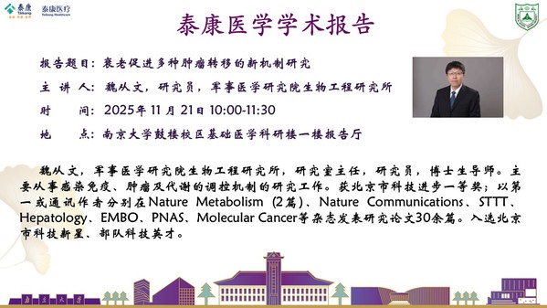 2025.11.21泰康医学学术报告-魏从文研究员:衰老促进多种肿瘤转移的新机制研究