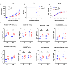图1. ADV 对皮下结直肠癌模型小鼠的治疗效果及其对肿瘤微环境的影响。