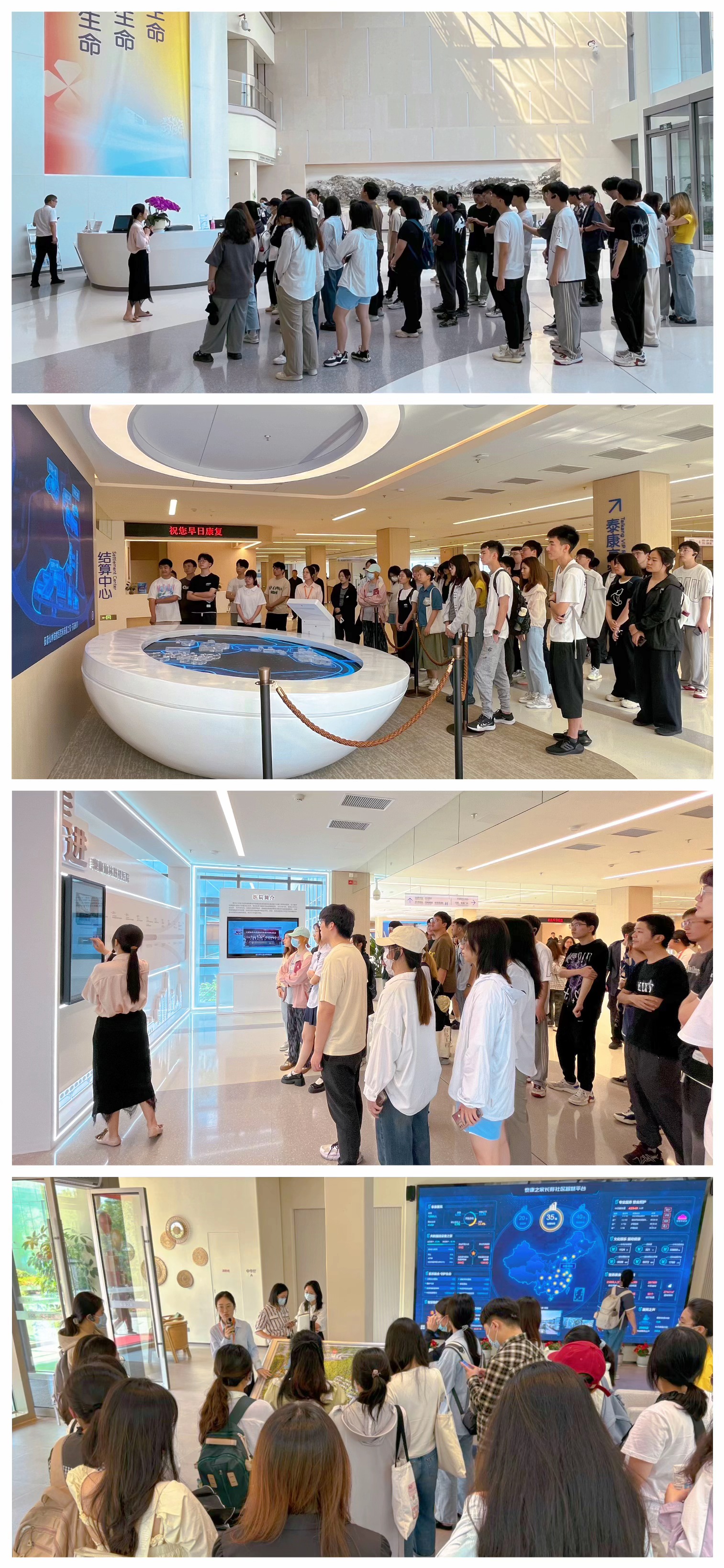 学院师生参观了医院一期,医院二期门诊大厅、医疗街、健康超体区域,以及泰康之家·苏园社区。大家对泰康仙林鼓楼医院的整体建设和运营情况表示称赞。