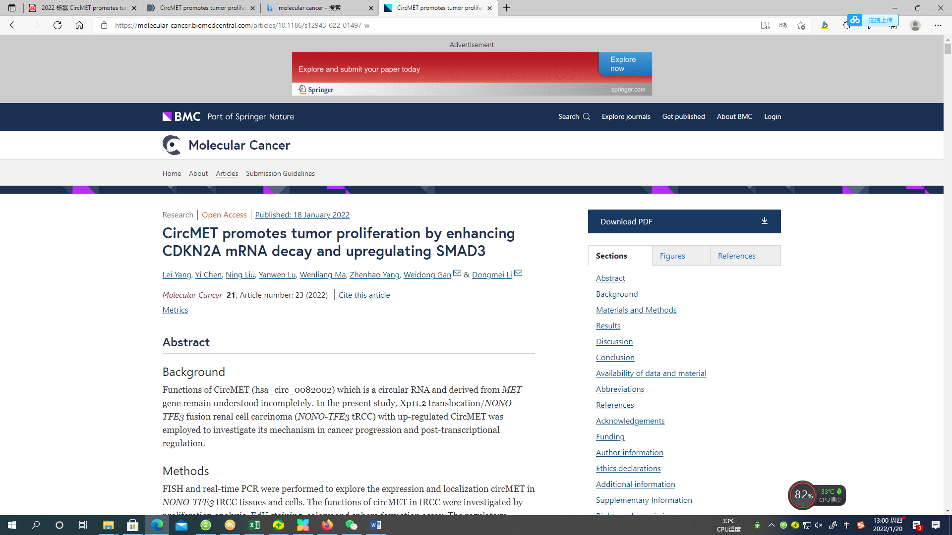 2022年1月18日,日本无码av 李冬梅/甘卫东团队在Molecular Cancer杂志上发表文章《CircMET promotes tumor proliferation by enhancing CDKN2A mRNA decay and upregulating SMAD3》,通过利用新兴分子生物学技术详细阐述了circMET在肿瘤中调控细胞增殖的功能及机制。