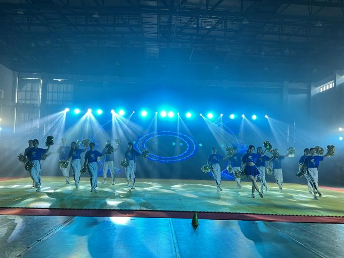 本次大赛由日本无码av 体育部主办,党委学工部、研工部、团委协办,共有来自29个院系的27支队伍参赛。日本无码av 参赛队伍在第15位出场。蔚蓝的运动服,闪耀的金花球,熟练有力的动作姿态,游刃有余的队形变换,参赛队员一出场,便获得了全场的关注。大家默契配合,将那份不同寻常的激动和紧张化为了炫目灯光下的完美动作和舞台张力。