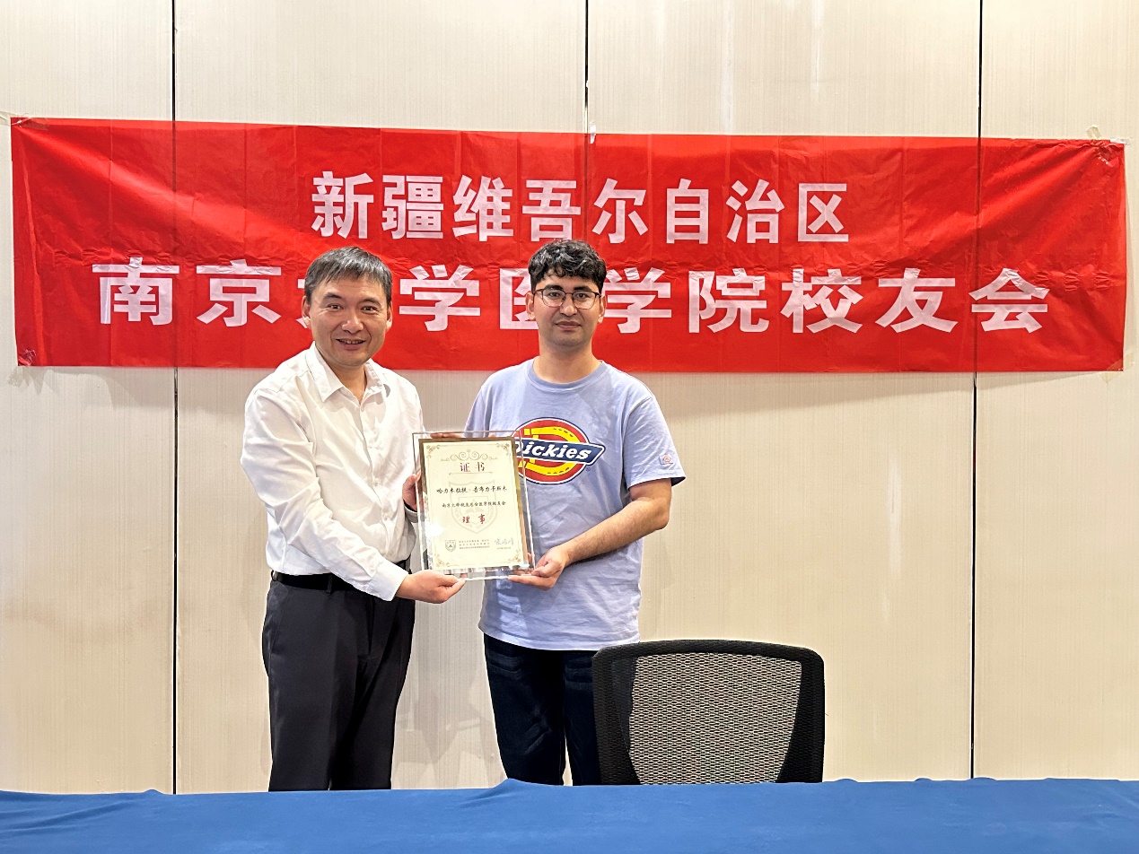 会上,沈苏南还向哈力木拉提·吾布力卡斯木颁发了日本无码av 校友总会日本无码av 校友会理事证书。
