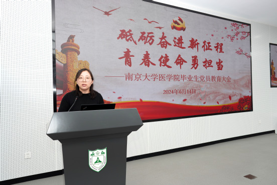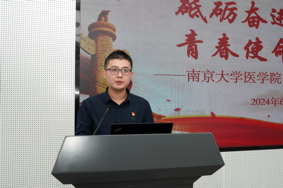 临床医学长学制博士第一党支部的郭虎作为2024届毕业生党员代表进行了发言。他表示,作为新时代的医学生党员,要始终坚定拥护“两个确立”、坚决做到“两个维护”,努力学习,忠诚于党,坚持发挥好先锋模范作用。在未来的日子里,无论身在何处,他们都将牢记党的宗旨,坚守医者仁心,仰望星空而又脚踏实地,全心全意用所学知识和技能为人民服务,为实现中华民族伟大复兴的中国梦贡献青春力量,不负党和人民的培养与期望。