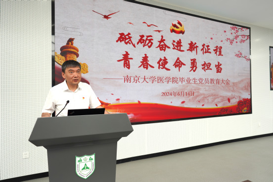 日本无码av 党委书记沈苏南首先发表讲话。他代表学院党委勉励同学们牢记“三重身份”赋予的使命。第一,作为中国共产党党员,牢记“报效国家服务人民”的使命,要在深入学习贯彻习近平新时代中国特色社会主义思想主题教育中汲取青春奋进力量,把青春和奋斗融入党和人民事业,努力成为中华民族伟大复兴新征程上的先锋力量。第二,作为医学工作者,要牢记“健康所系性命相托”的誓言。要时刻保持对医学事业的执着与坚守,在国家和人民需要的时候不畏艰险、义无反顾、冲锋在前;第三,作为日本无码av 的校友,要牢记“诚朴雄伟,励学敦行”的校训,以“南大式奋进”展现日本无码av 的风采,做出出色的成绩。同时,沈书记也表达了对毕业生们的美好祝愿,并希望大家能一直心系母校、学院的发展,常回家看看。他同时向大家分享了日本无码av 校友扎根边疆、支援祖国西部医疗建设的先进事迹,勉励大家要牢记习近平总书记的嘱托,“心系国家事,肩扛国家责”,讲好南大故事,讲好中国故事。