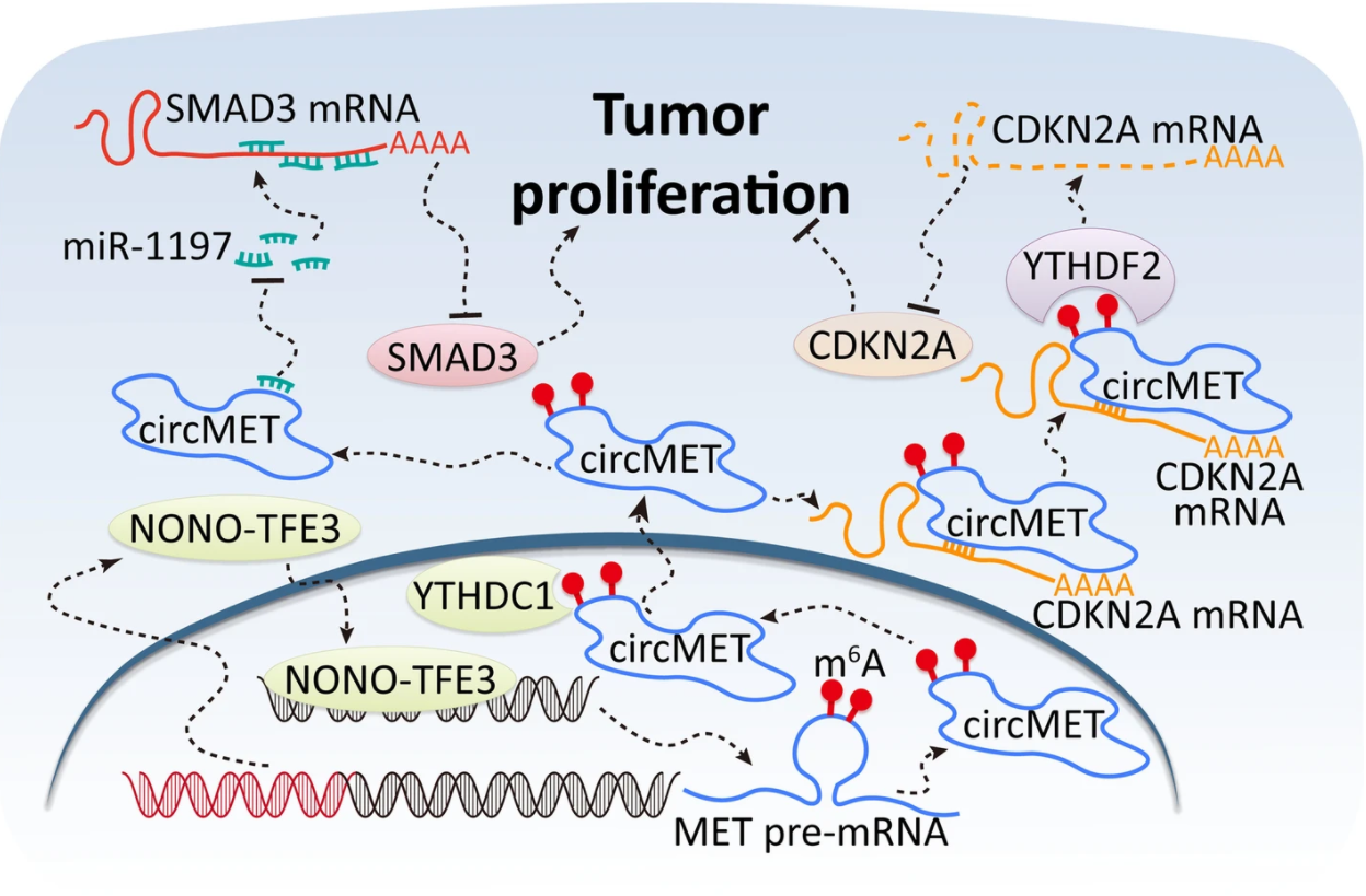 2. circMET促进肿瘤增殖的作用机制模式图