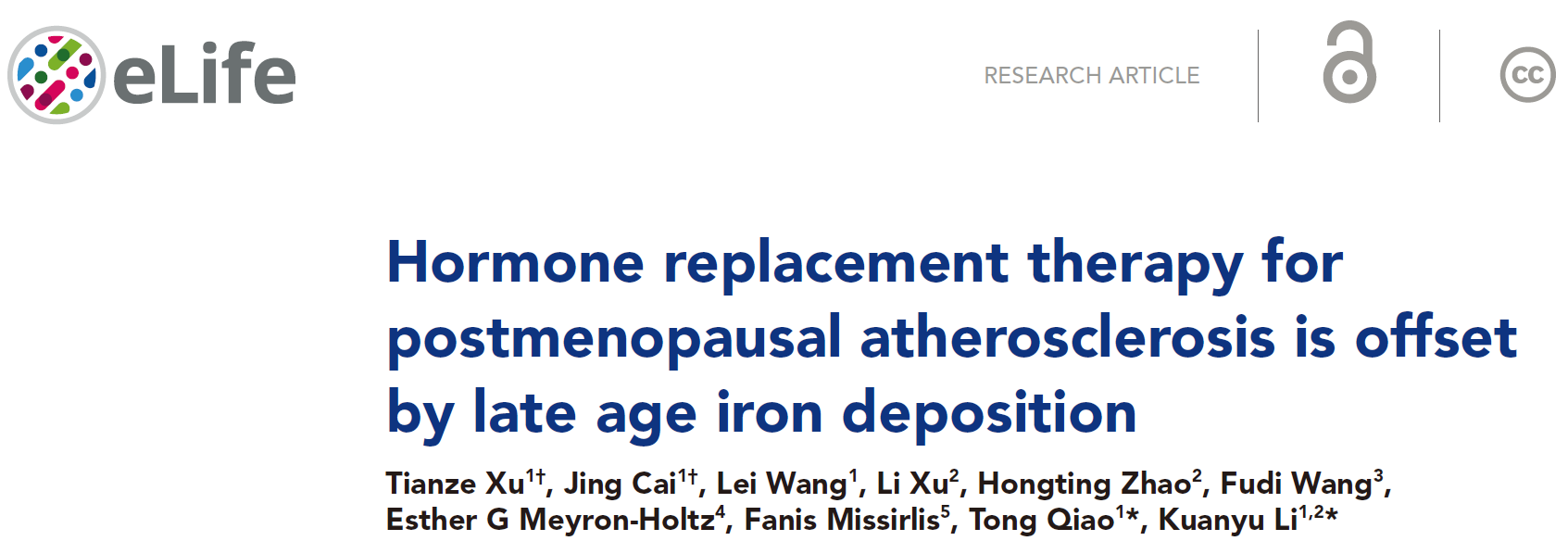 2023年8月10日,日本无码av 教授李宽钰和附属鼓楼医院血管外科主任乔彤团队合作在eLife杂志发表了题为“Hormone replacement therapy for postmenopausal atherosclerosis is offset by late age iron deposition”的论文,该研究揭示衰老相关铁累积可能是绝经后期动脉粥样硬化患者难以从HRT中获益的重要原因。本研究发表日eLife附上了哈佛日本无码av 麻省总医院心脏病专家Rajeev Malhotra的评述(Insight),高度评价了本研究成果:This study provides strong evidence that iron accumulation shifts estradiol from a drug that reduces atherosclerosis to a drug that promotes its progression.本研究得到了南华大学王福俤教授,以色列理工大学Esther Meyron教授,墨西哥Cinvestav的Fanis Missirlis教授和美国NIH的张德良博士的帮助,得到国家自然科学基金(#32271221, 81870348)的资助。