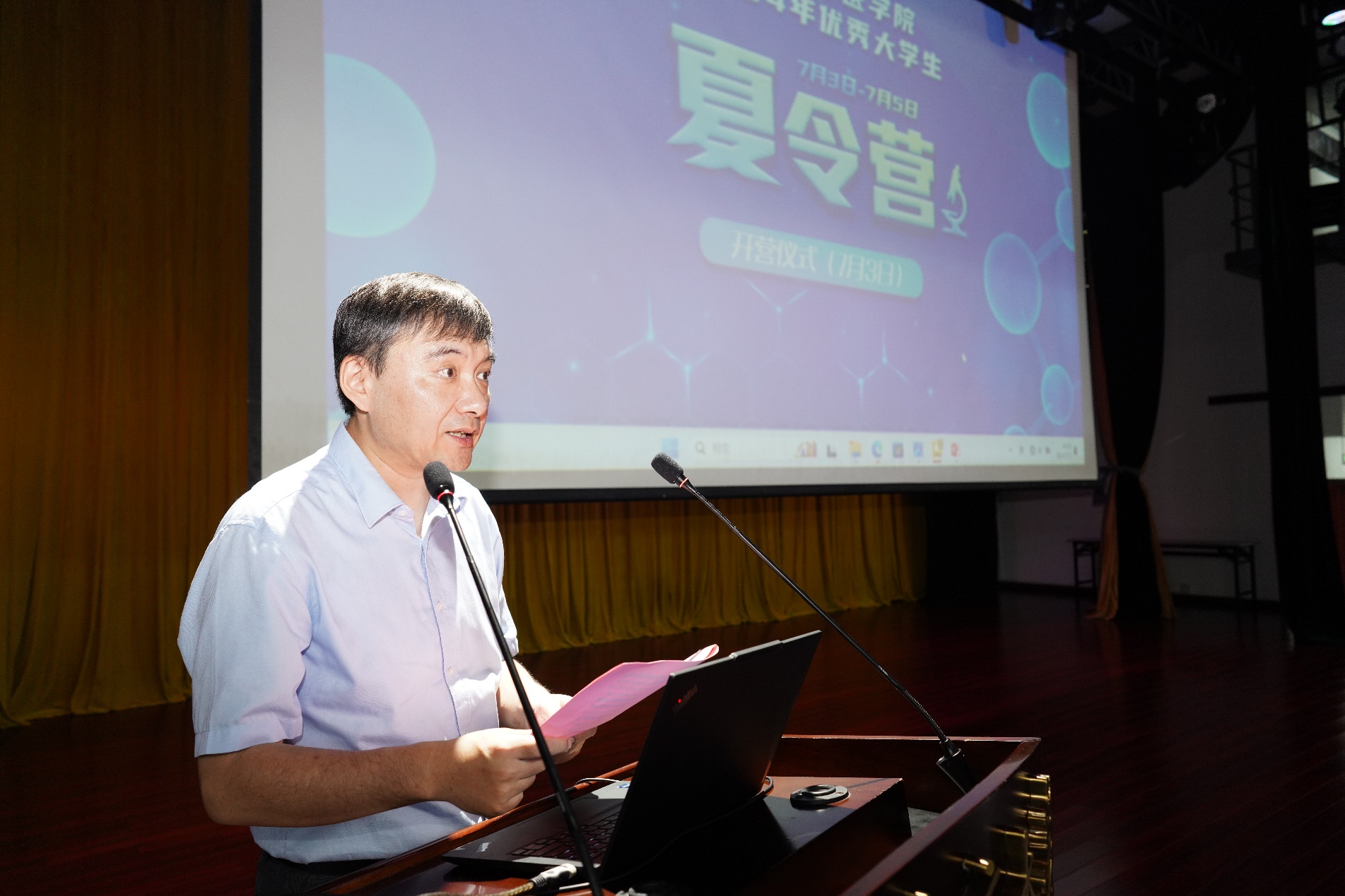 沈苏南首先为开营仪式致辞。他对前来参加夏令营的优秀学子们表示诚挚的欢迎,希望大家能以夏令营为契机,不断探索和发掘自己的潜能,寻找到最适合自己的专业和发展方向,赓续报国传统,坚持德能并进,勇于砥砺奋斗。