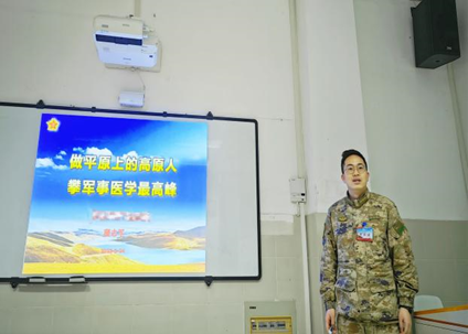 做出从医院到军营、从东部沿海到西南地区的选择,蒲志军满怀激情、豪情万丈,也获得了家人的大力支持。经过层层选拔和考核,蒲志军终于穿上了梦寐以求的军装。在为期半年的岗前任职培训中,他积极表现,勇挑重担,接受全方位的军事专业知识学习。同时,蒲志军利用课余时间认真学习特种医学知识,了解学科发展前沿,主动与教研室讨论学习,向学科前辈们请教,努力将自己擅长的研究方向与军事特种医学相结合,希望开拓新的研究方向和领域,为我国军事特种医学和国防事业奉献自己的力量。
