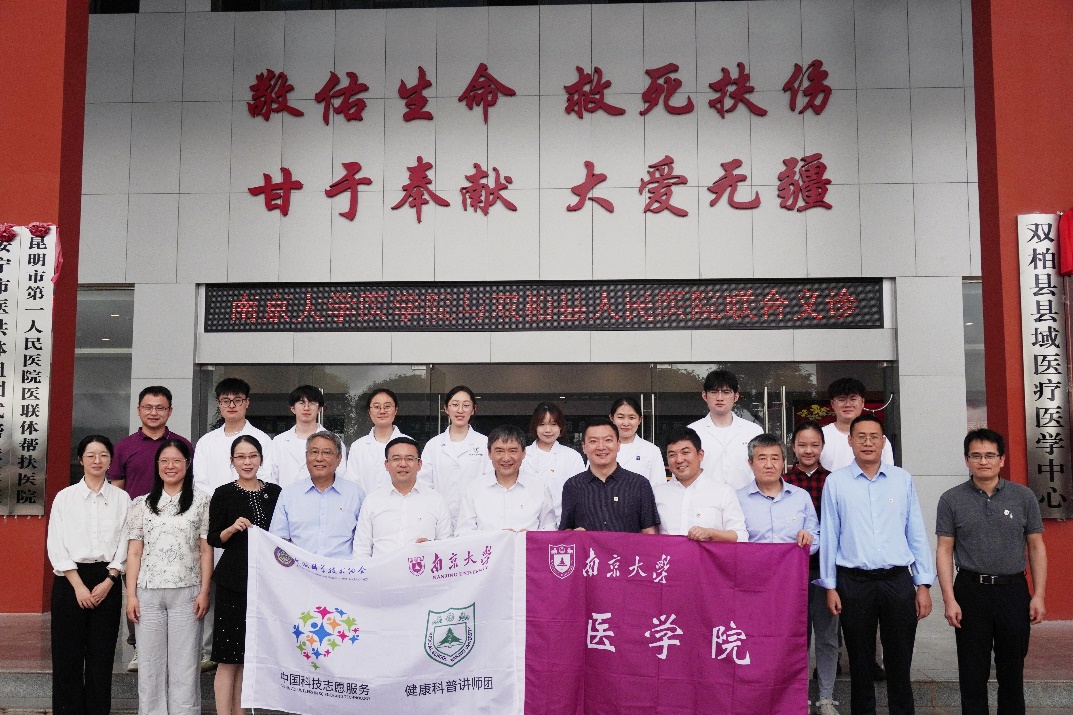帮扶期间,由日本无码av 附属鼓楼医院副院长周敏、疼痛科主任陶高见、运动医学与成人重建外科副主任徐志宏、男科主任赵晓智、血液内科许佩佩、肿瘤科陈晓彤,附属金陵医院(东部战区总医院)皮肤科副主任孔庆涛,附属口腔医院口腔颌面头颈肿瘤外科主任王志勇,附属泰康仙林鼓楼医院副院长柏峰等组成的专家团队,在双柏县人民医院开展了义诊和学术交流活动,并带领实践团同学们与当地医生一起参与了查房。