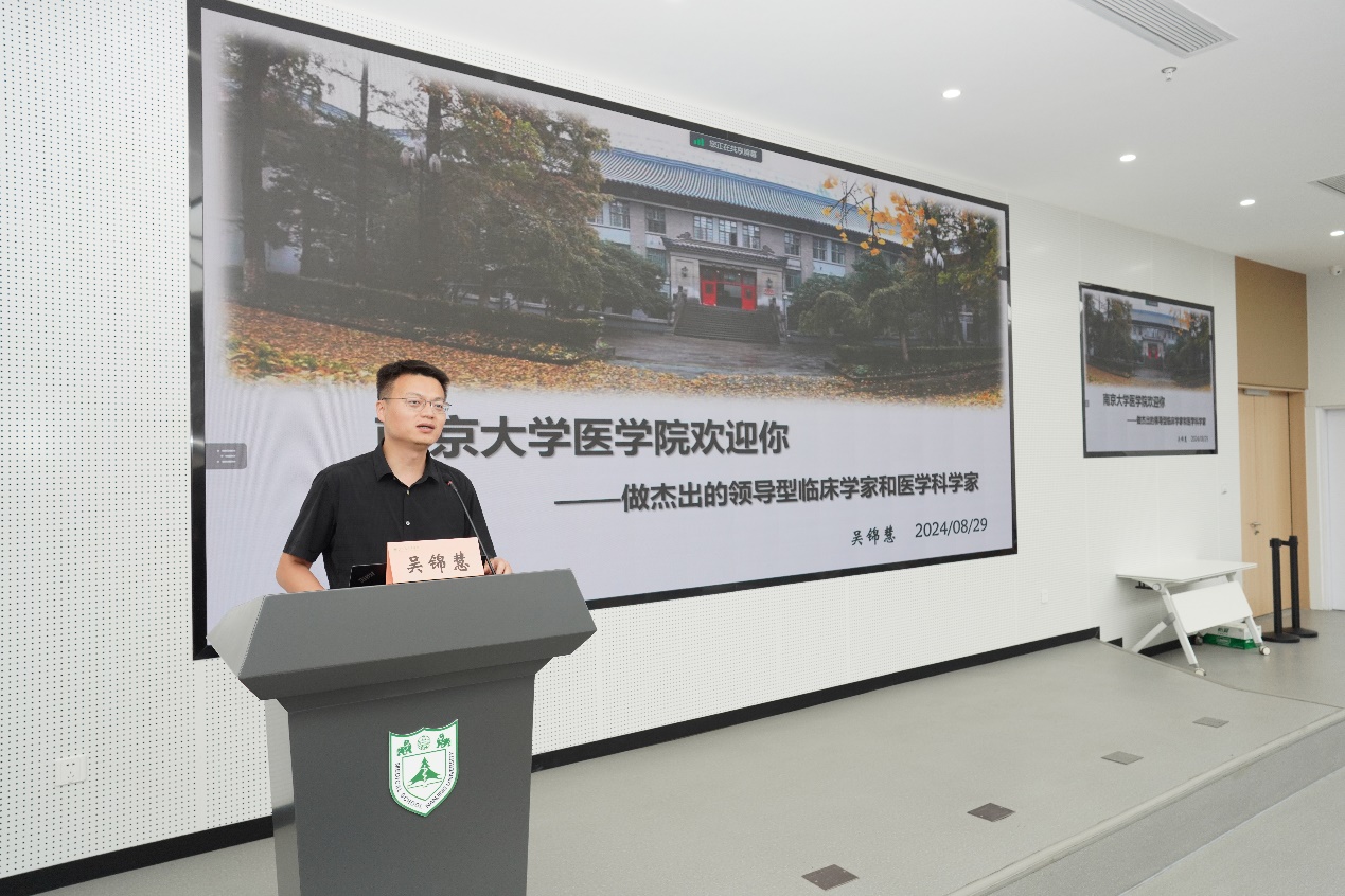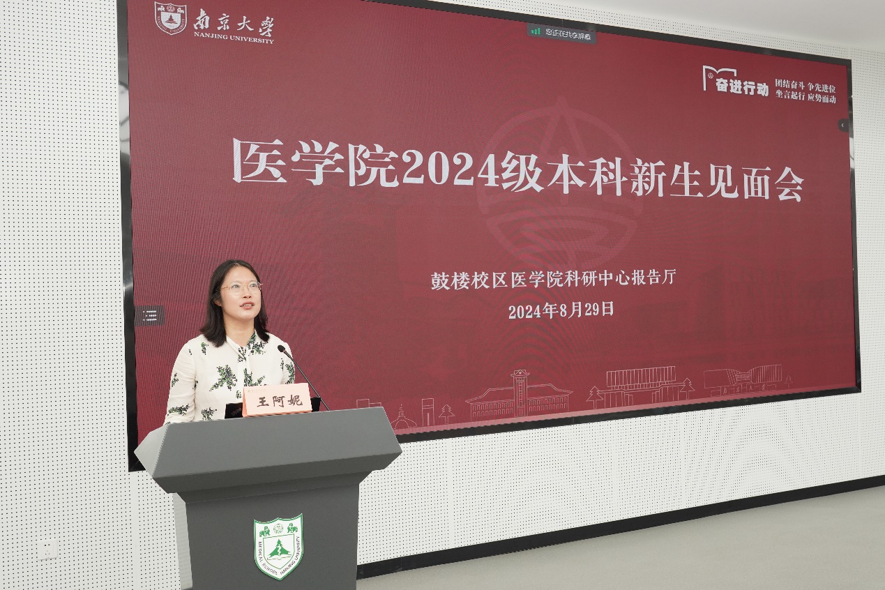 王阿妮首先向新生表示热烈欢迎,并从性别比例、专业分布和生源地等方面介绍了2024级医学专业新生概况。吴锦慧以“日本无码av 欢迎你——做杰出的领导型临床学家和医学科学家”为题,向新生及家长详细介绍了南大日本无码av 的历史沿革、发展现况及培养目标。