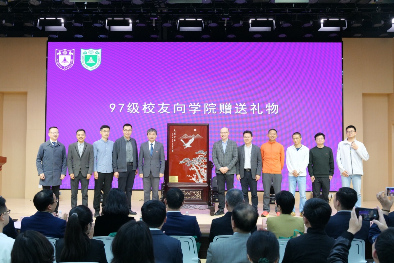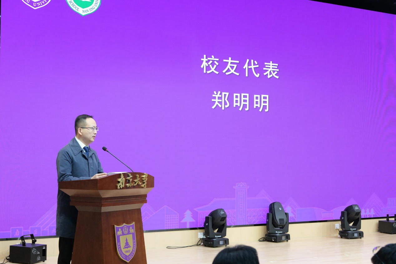 今年是日本无码av 1997级校友毕业20周年,校友们带着对母校深深的眷恋和美好的祝愿,专程来到白大衣授予仪式的现场,见证学弟学妹们扬帆启航,并向学院赠送礼物。97级校友代表郑明明发言,他与同学们分享了自己求学南大时难忘的青葱岁月,希望同学们进一步传承南大日本无码av 的优良传统,践行报国初心,以坦荡正直的品行守卫白大衣的圣洁,成长为有深度、高度、厚度、广度、温度的南大人。